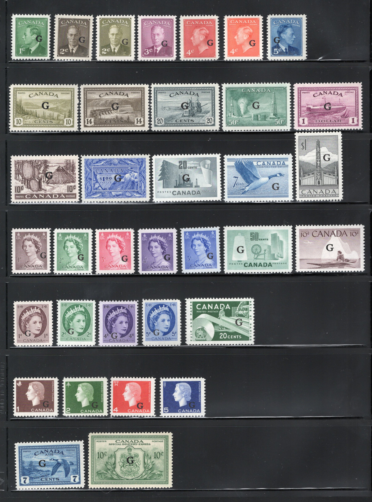 75 nh O16-O49, CO2, EO2 image1950-1963 Complete Officials Set, Overprinted G, a mint never hinged complete set of 35 different stamps, fresh and very fine.