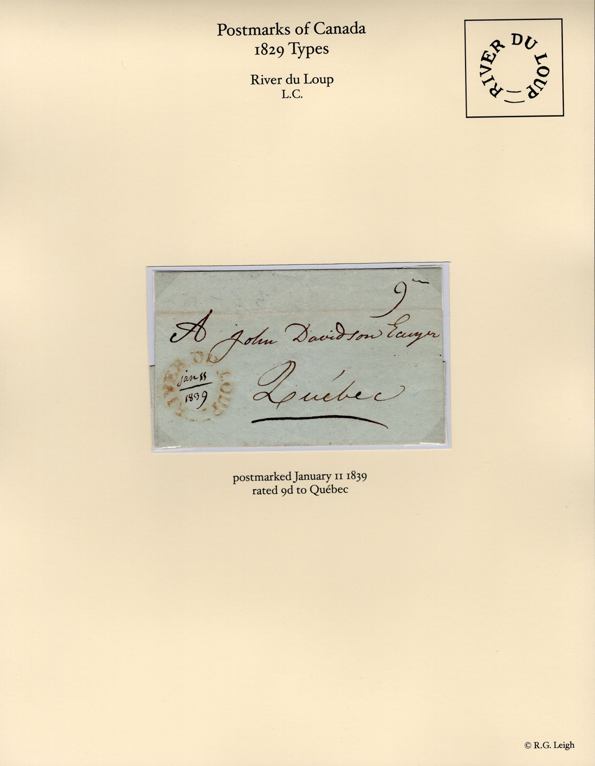 (L.C.) Folded Cover to Québec City, mailed on JAN.11.1839 (1829-type in red), very fine.