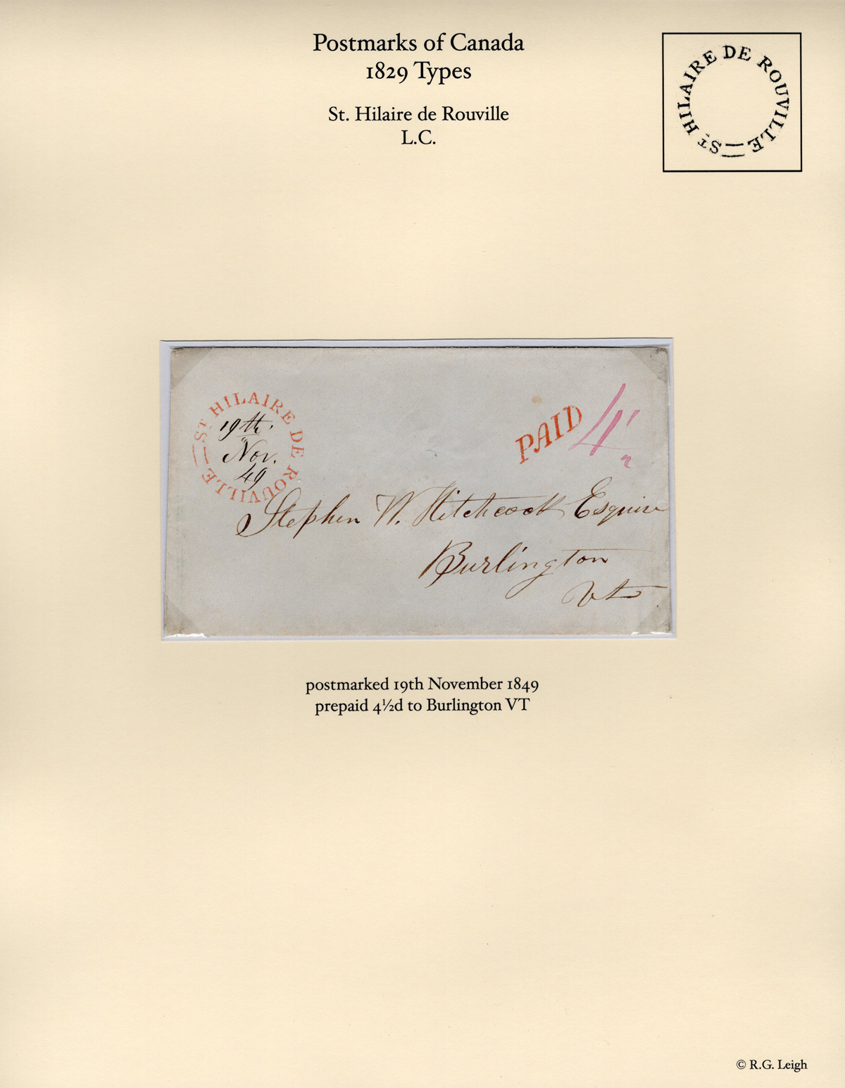 Rouville (L.C.) Cross-Border Cover to Burlington, Vermont, mailed on NOV.19.1849 (1829-type in red is the new LRD), a pristine (proof-like) example of this scarce postmark.