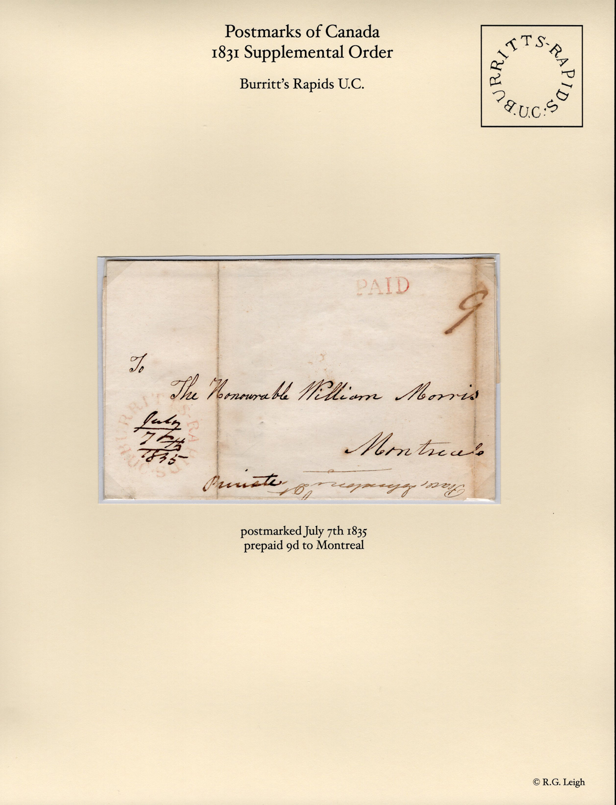 (U.C.) Folded Cover to Montréal, mailed on JUL.7.1835 (1831 supplemental order, in red), stains and creases, else fine, and quite possibly the ERD, although the PHSC website (perhaps erroneously) lists this as proofed in 1839.