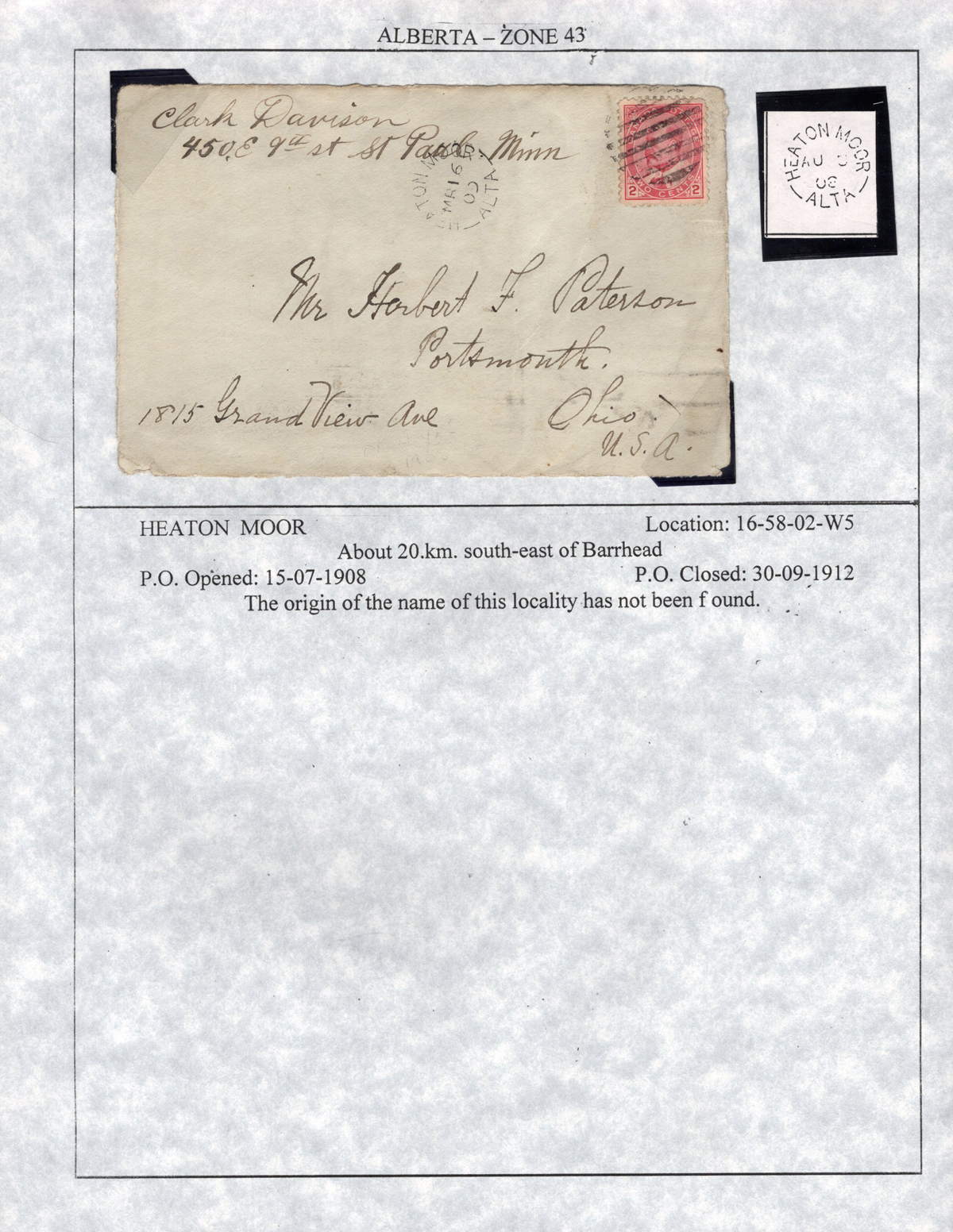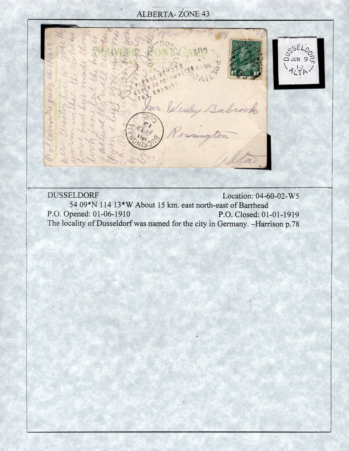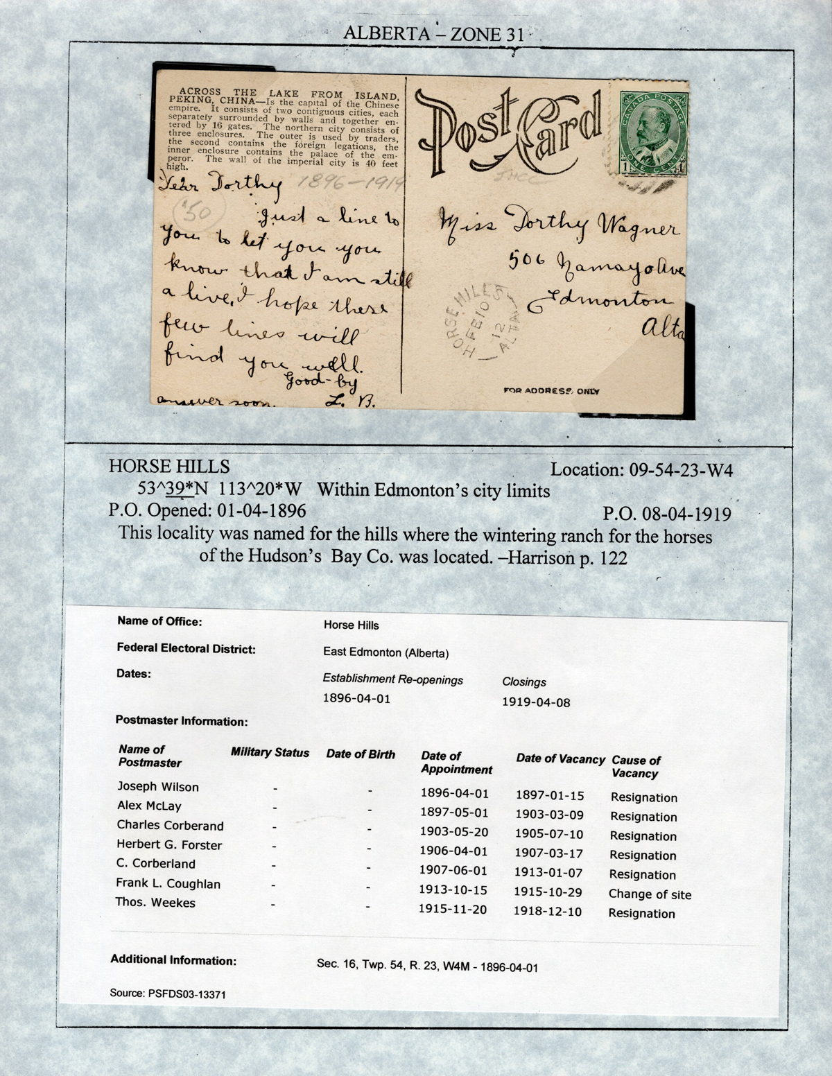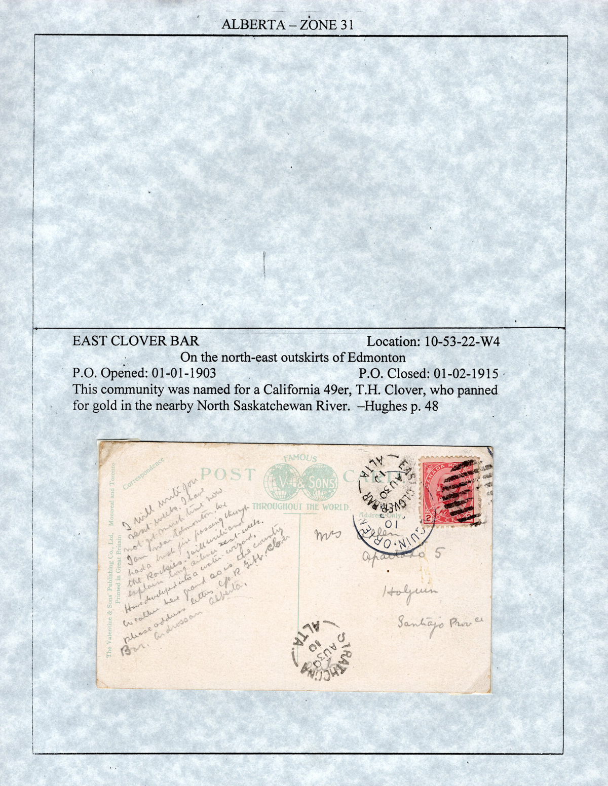 / Alta Postmark on a Picture Postcard, mailed on AUG.10.1910 to the United States (?) via Strathcona, Alta (AUG.30 transit). Post Office open from 1903 to 1915 only.
