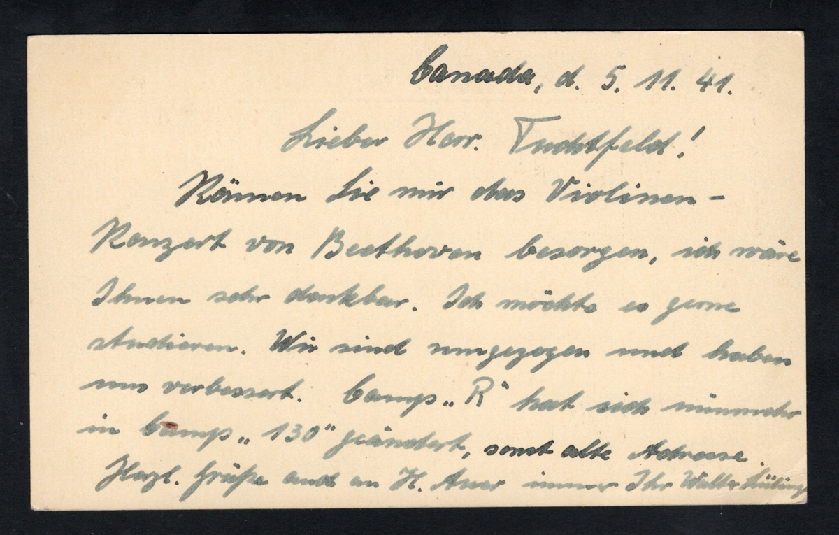 Prisoner of War Censored Card, mailed on MAY.11.1941 (dateline) in Camp 130 (Kananaskis / Seebe Camp K near Calgary) addressed to Buffalo, NY, very fine. (Scan 1)
