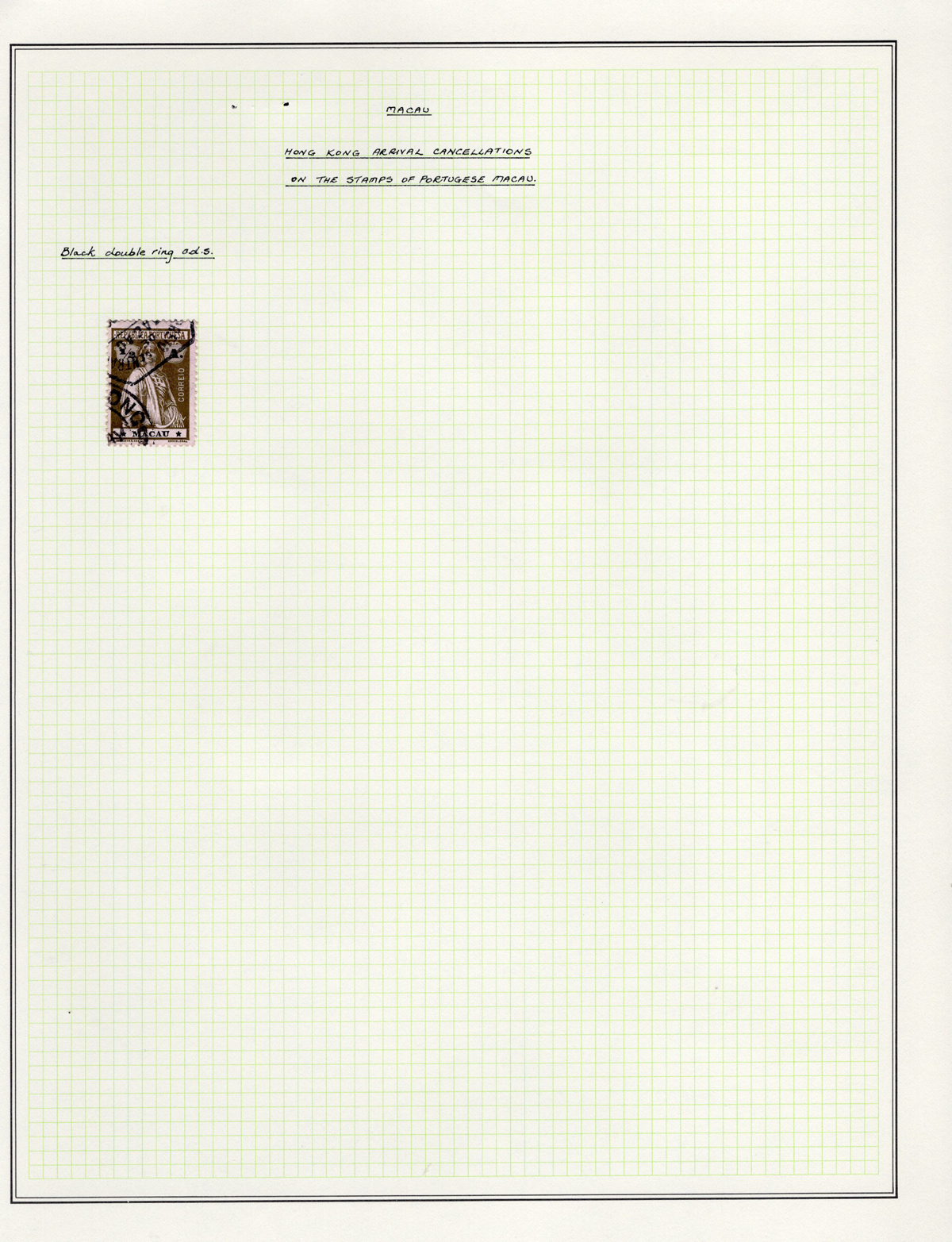 408 O   imageGroup of Portuguese Macau Stamps with Hong Kong Receiver Postmarks, one has a “B62” postmark, and 32 have various Hong Kong circular datestamps. A difficult to assemble group. (Scan 1) (Scan 2) (Scan 3) (All Scans) (All Images)