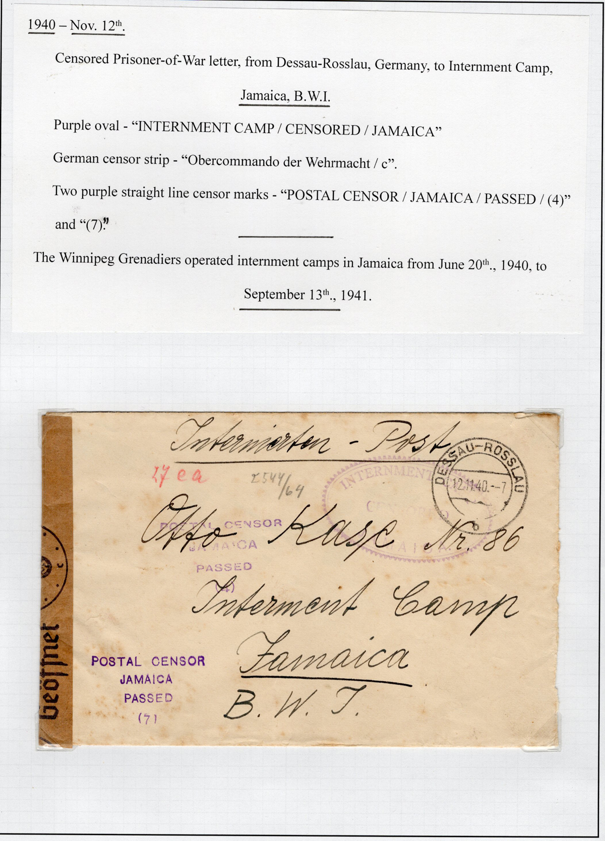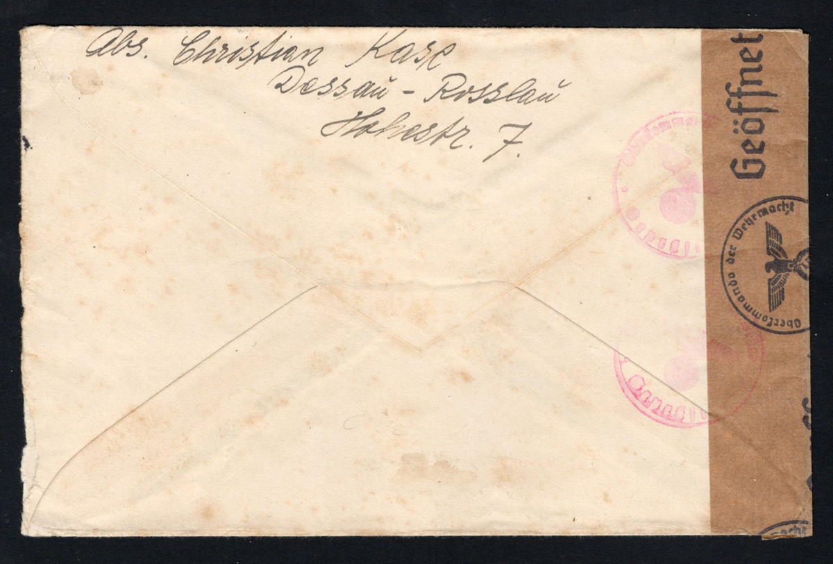 boxed “Return to Sender / Unclaimed” handstamp, plus a lengthy instructional label on back. Reduced at left, else fine.