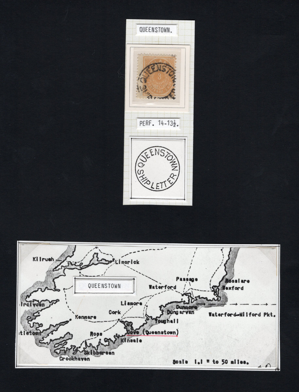 549 O   imageQueenstown Ship Letter Postmark on an Iceland Stamp, an 1882 3 aur orange Icelandic Numeral with an almost socked on the nose circular postmark from the Irish port town, very fine and rare.
