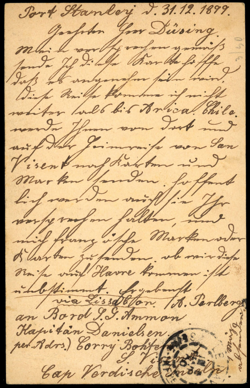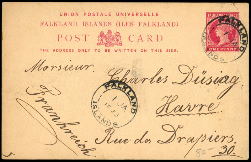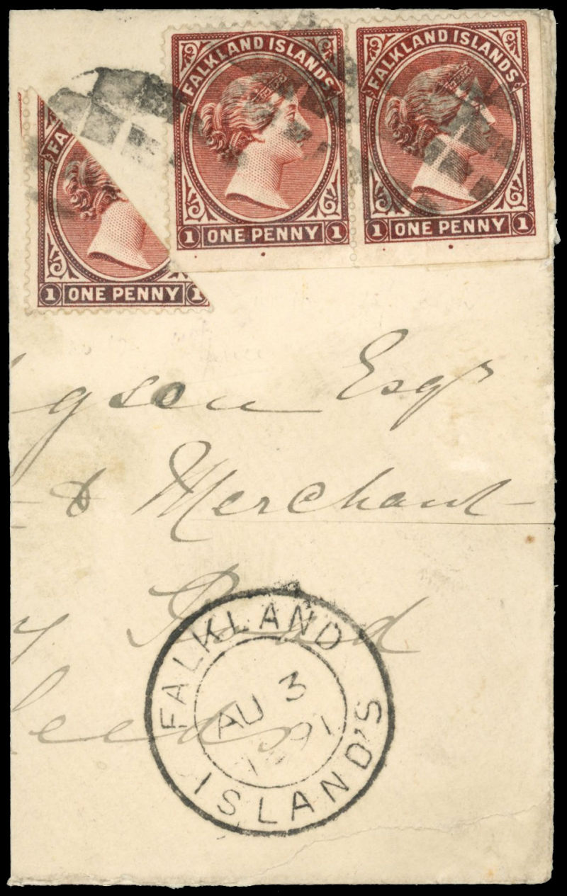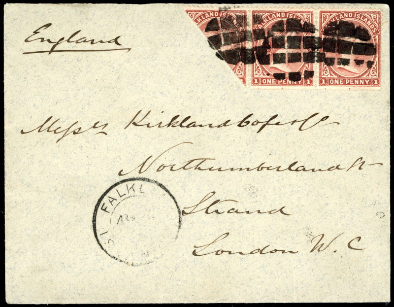 partial Port Stanley Agency/ Hamburg cachet. Creasing towards base. SG 3 (Image)
