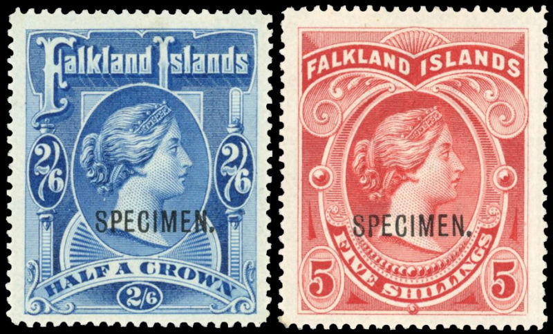 361   image1898 2s6d deep blue and 5s red, type B2 'SPECIMEN.' overprinted for UPU distribution, fresh and very fine large part o.g. Rare in this lovely condition. SG 41s-42s cat £650 (Image)