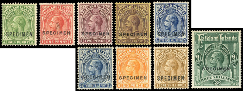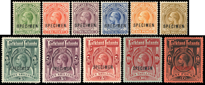 1912-20 set of eleven overprinted SPECIMEN Type D12 or 12a, large part o.g. Fine and scarce. SG 60s-69s, £1900 (Image)