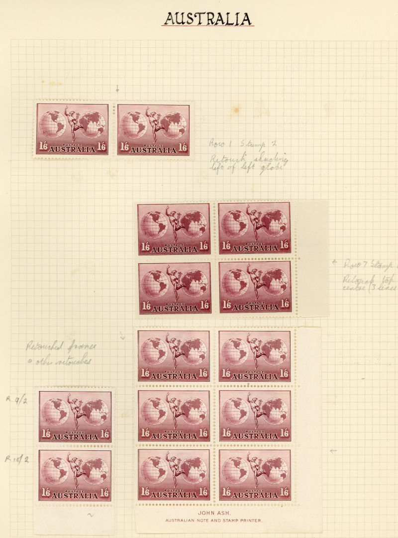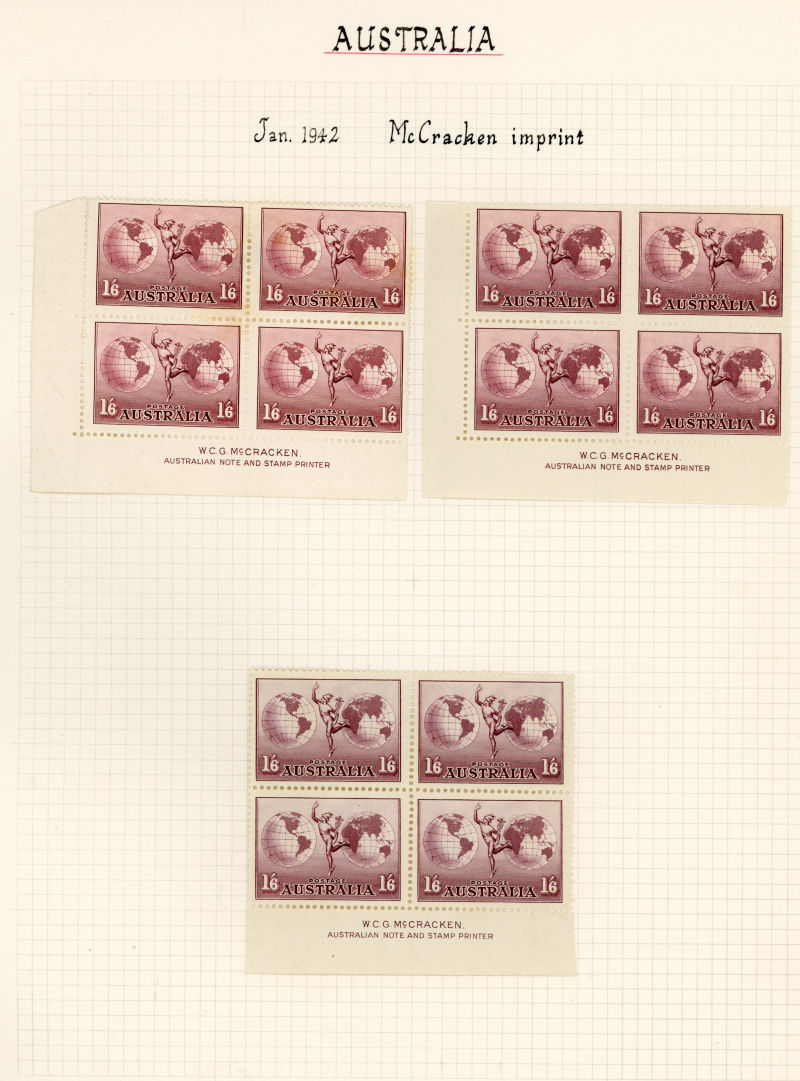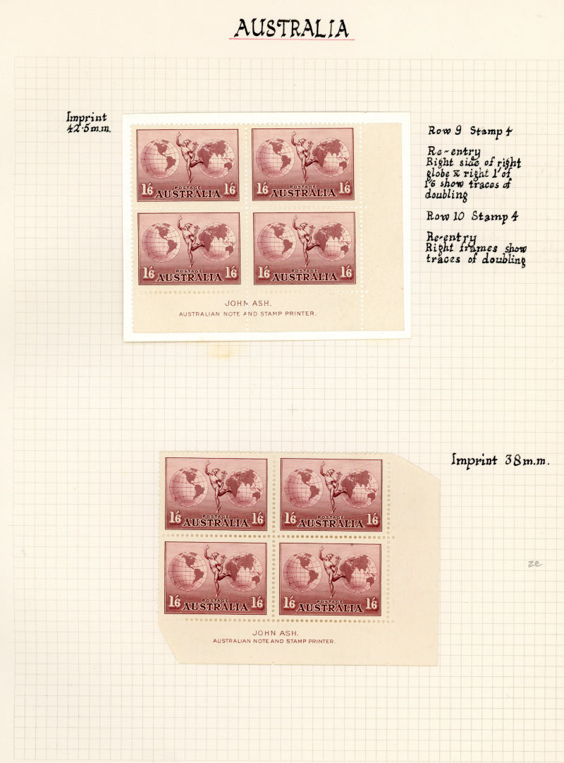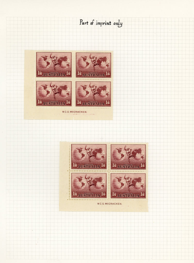 1/6d Hermes collection (79) mint with no watermark Ash imprint block, hinged on top pair only; watermarked chalky paper imprint blocks with listed varieties; further varieties, mostly listed; block printed on crudely-repaired paper, the printing