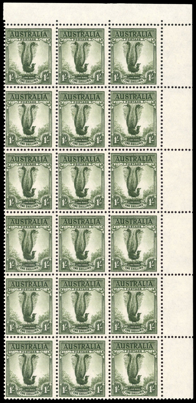 1s grey-green no watermark corner block of eighteen, R1-6/6 roller flaw, fine mint unmounted o.g. SG 230d/db, cat £369 (Image)