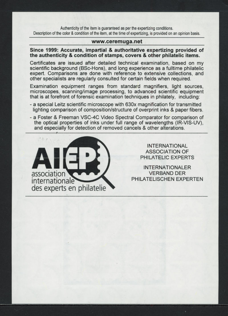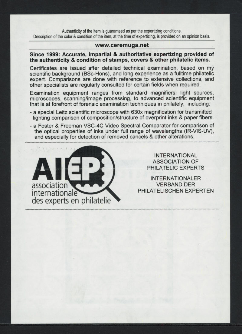 showing embossed on the repair; ordinary paper imprint block with “Ghost A” on R10/2, and two blocks showing the imprint under “W.C.G. McCracken” virtually omitted. Some foxing but not affecting the items mentioned. SG 153-b (Image) (Image2)