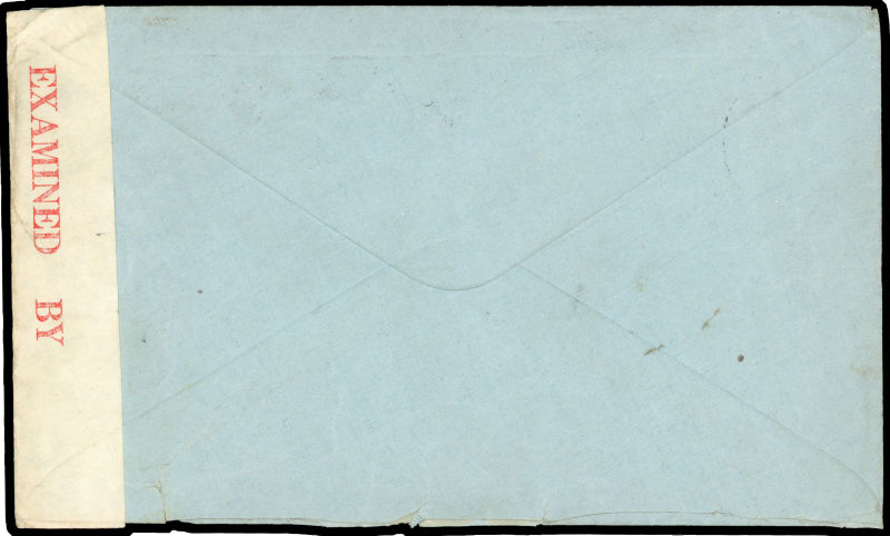 2d grey perf 13½ watermark sideways coil pair on cover with 1d, tied by ‘Travel Key’ machine cancel of MR 12. Censor tape at right. Unusual on cover. SG 124ab