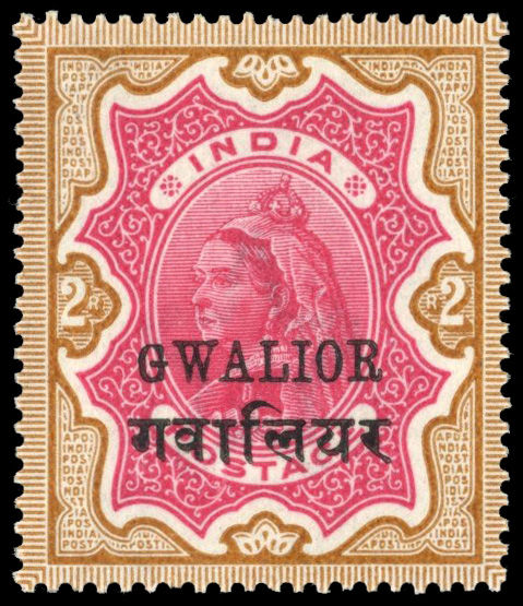 I.C.S. Gwalior SG 35a 1885-97 2r small G mint