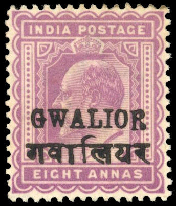 I.C.S. Gwalior SG 57Ae 8a purple tall 'R' mint
