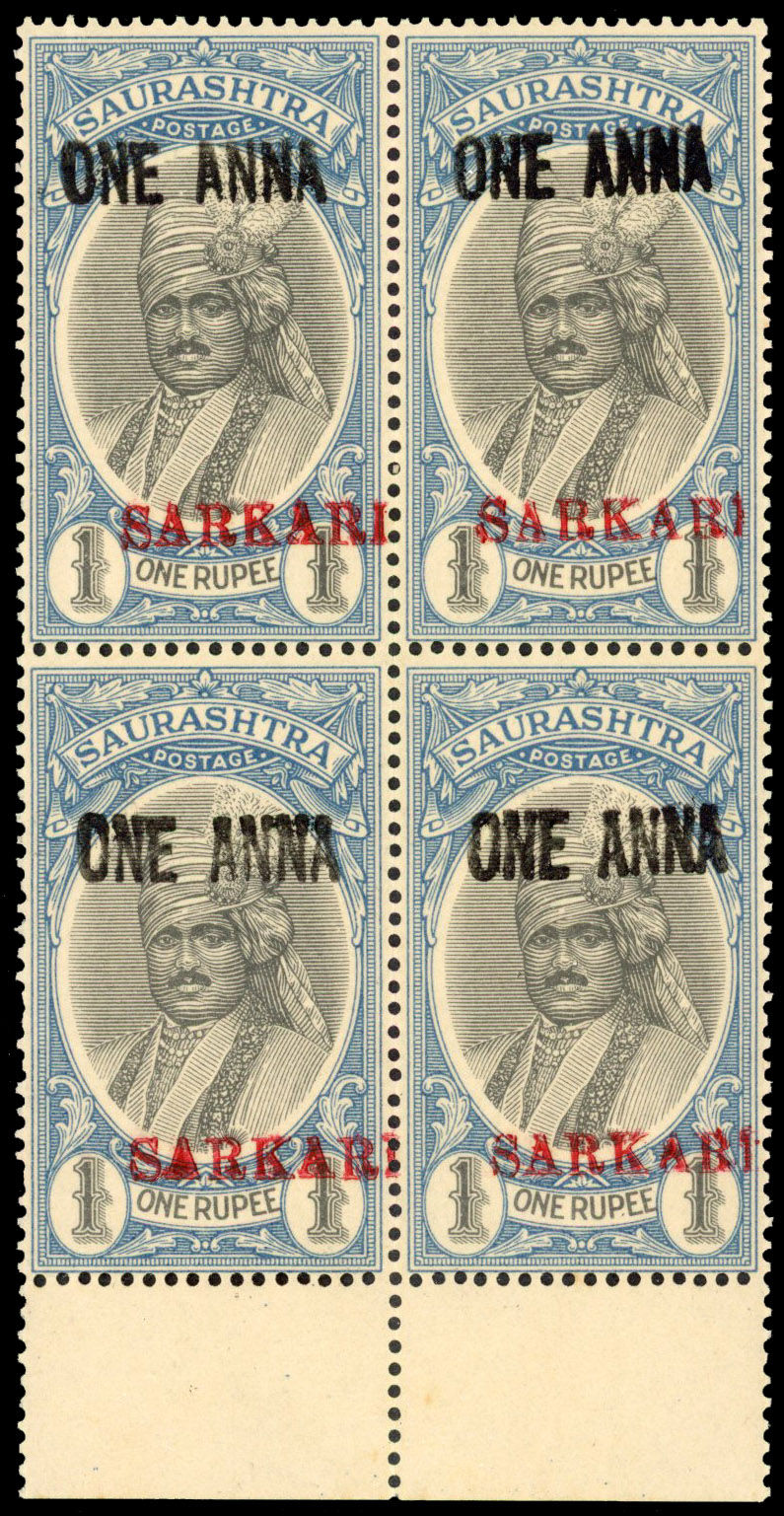 I.F.S. Rajasthan SG 7B 1948 1r handstamped in viol