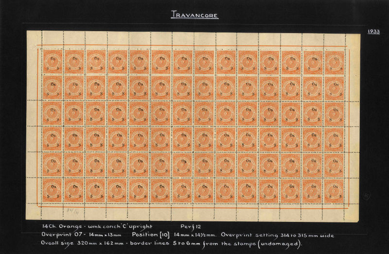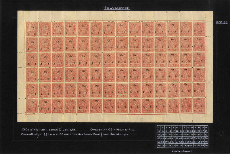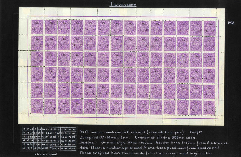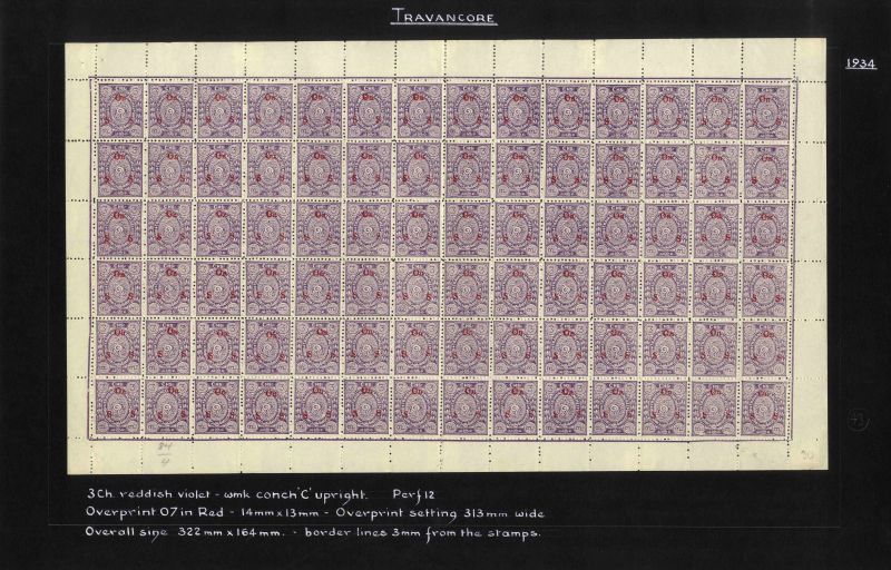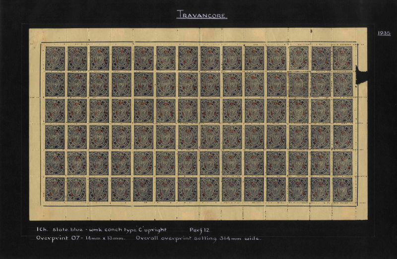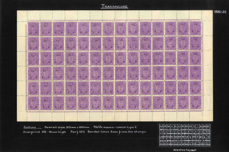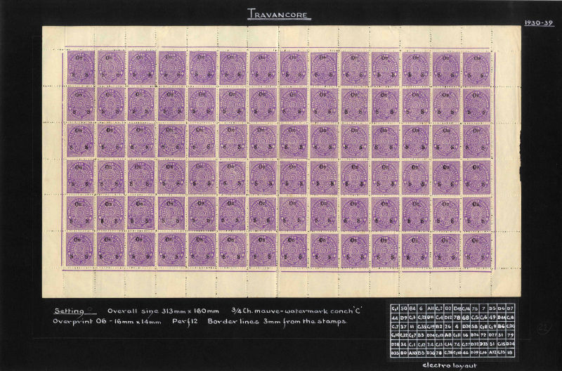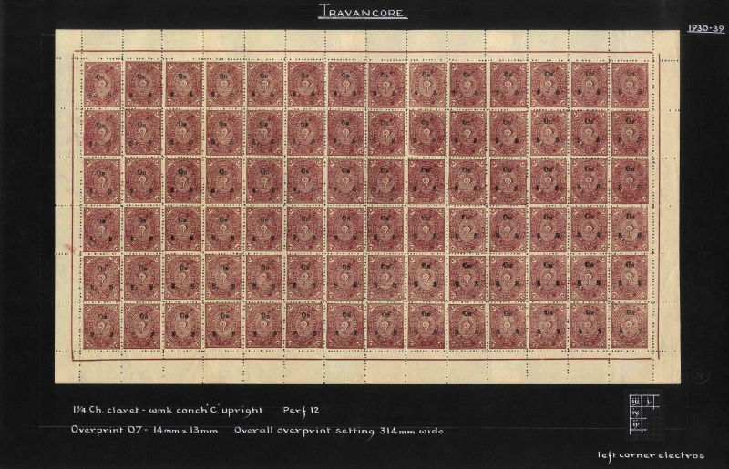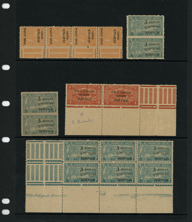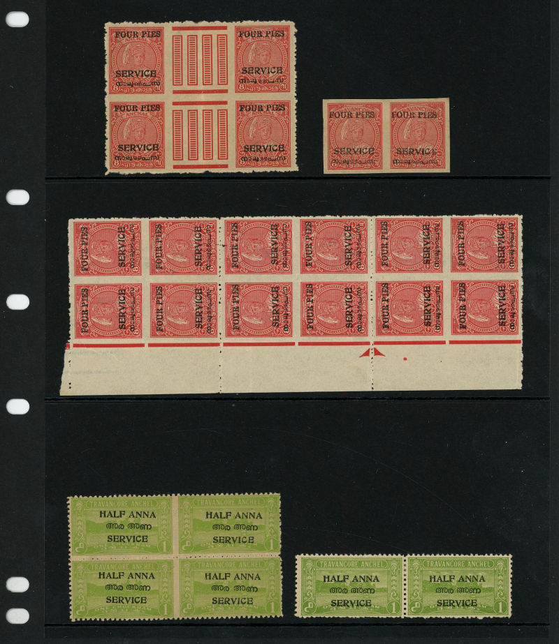 I.F.S. Travancore SG O69Aa/Ba 1937 Official 4ch sh