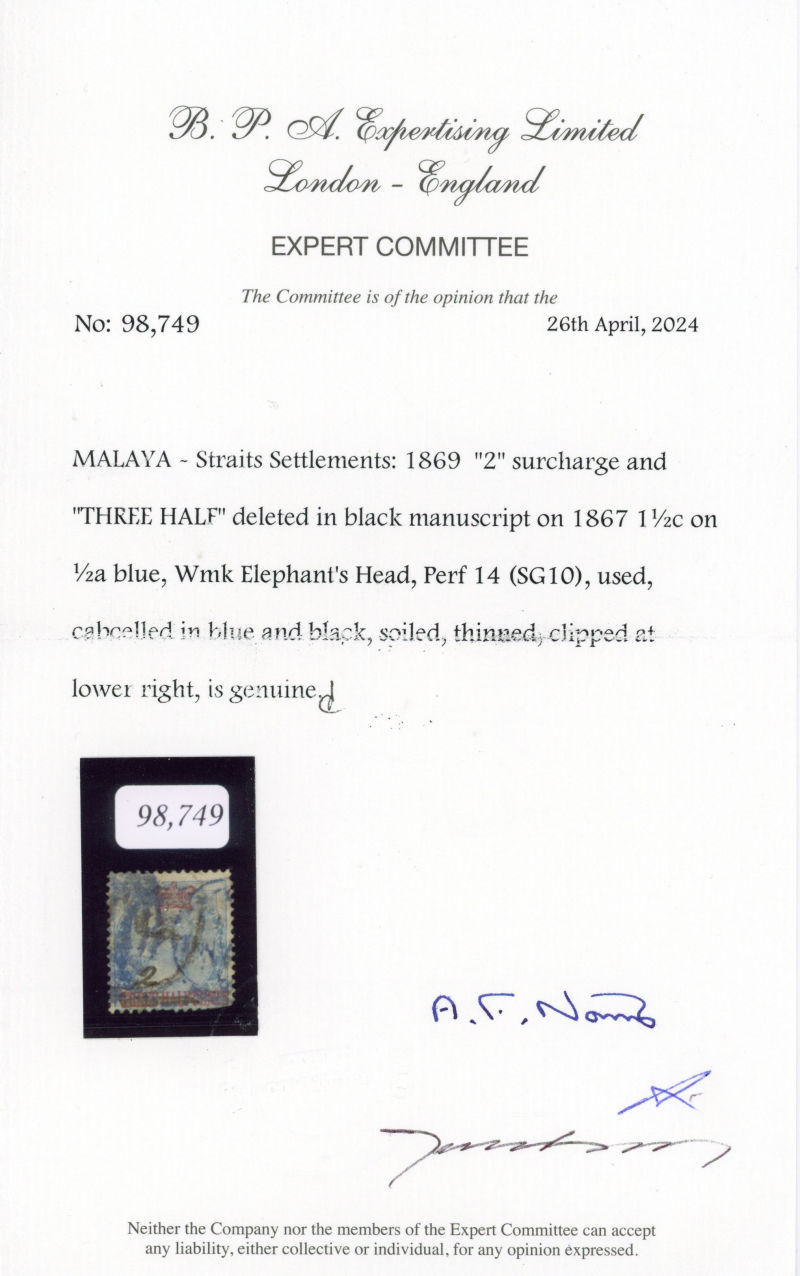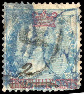 1869 ‘2’ surcharge in manuscript and ‘THREE HALF’