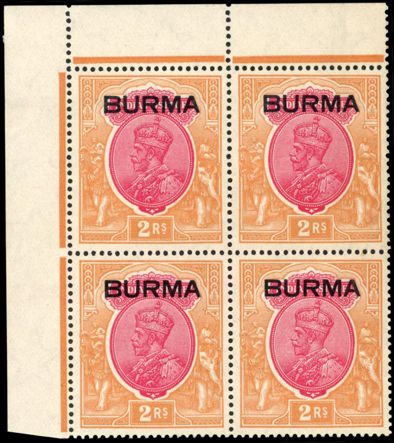 BURMA 1937 SG 14 2r block mint