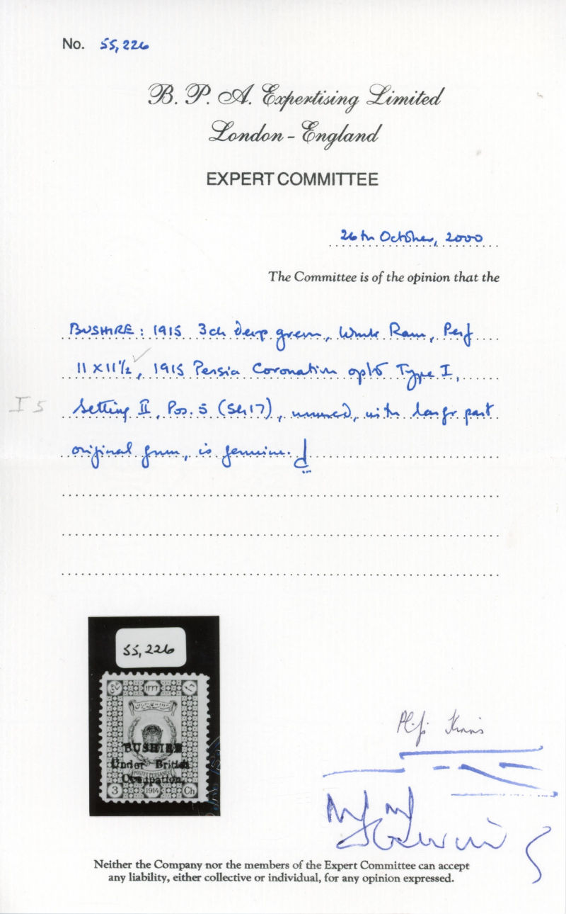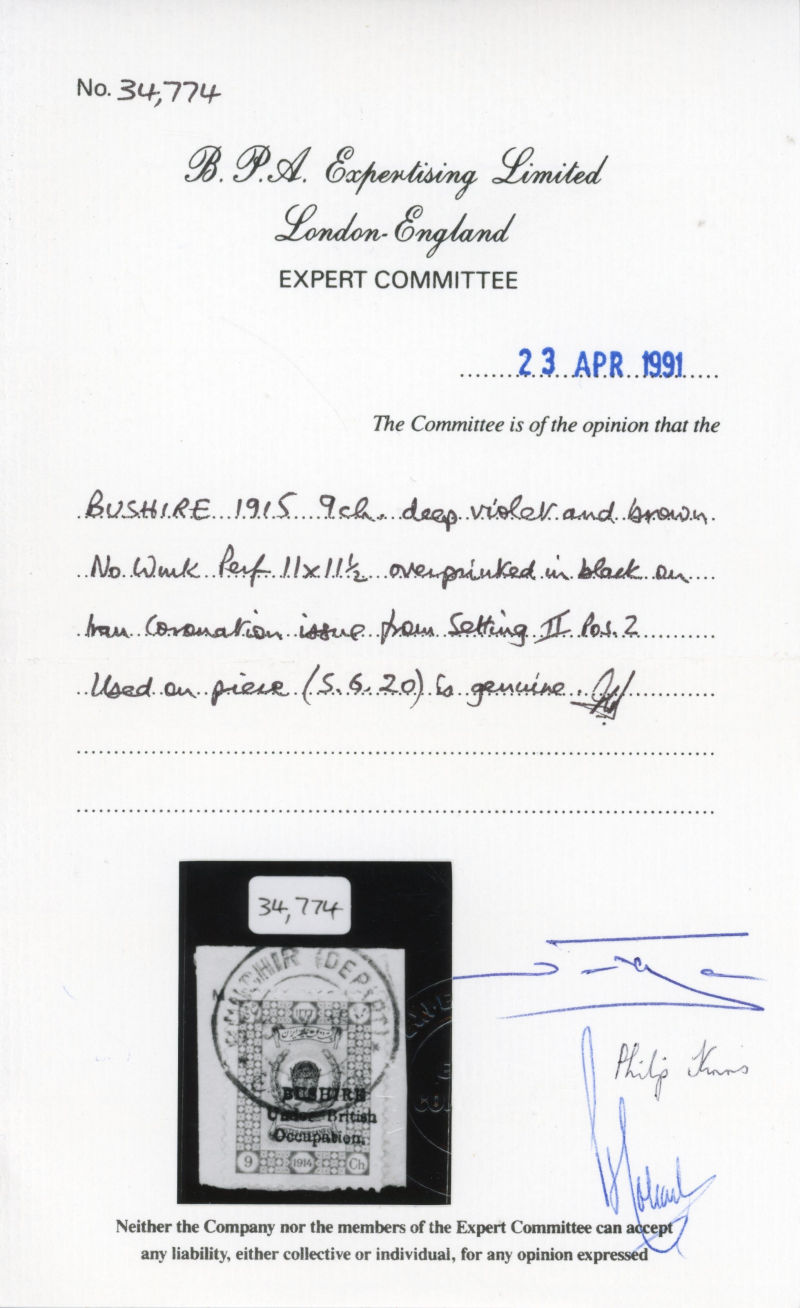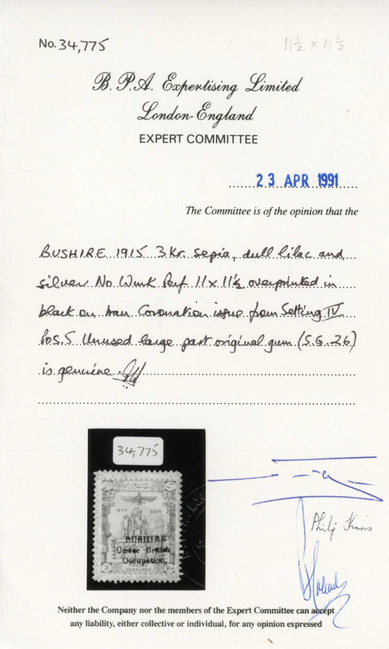 Bushire British Occupation SG 17 1915 3ch Coronati