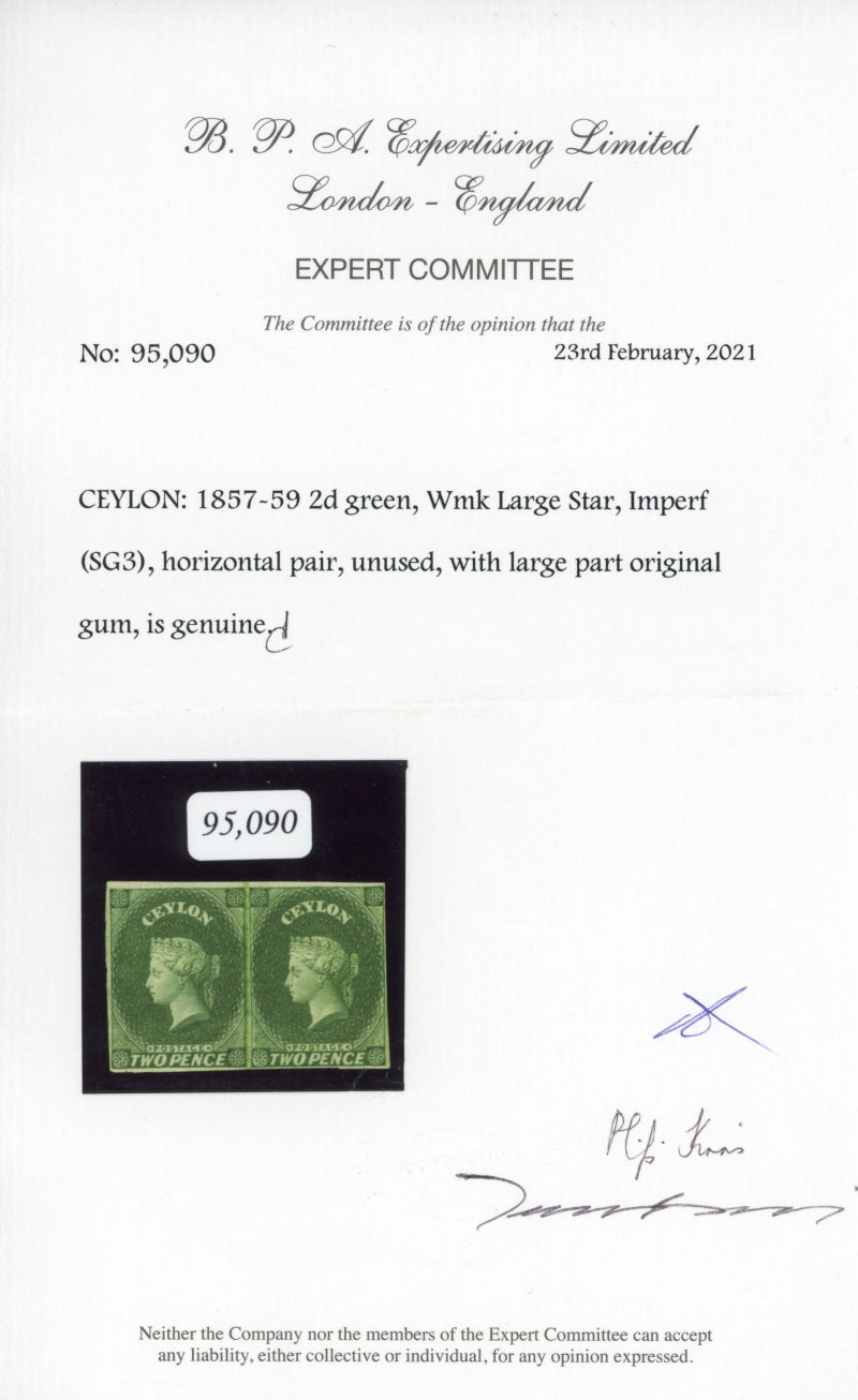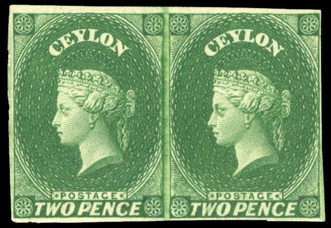Ceylon 1857-59 2d green, horizontal pair, mint, SG