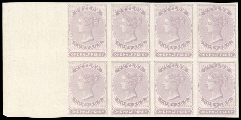 Ceylon SG 17 1857-64 ½d block of eight mint