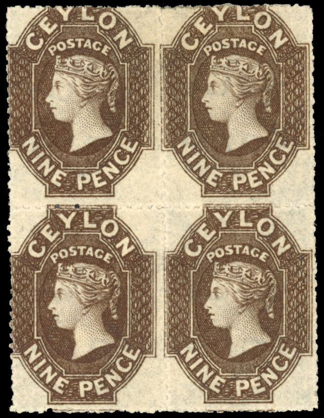 Ceylon SG 33 1861-4 9d rough perf block of four mi