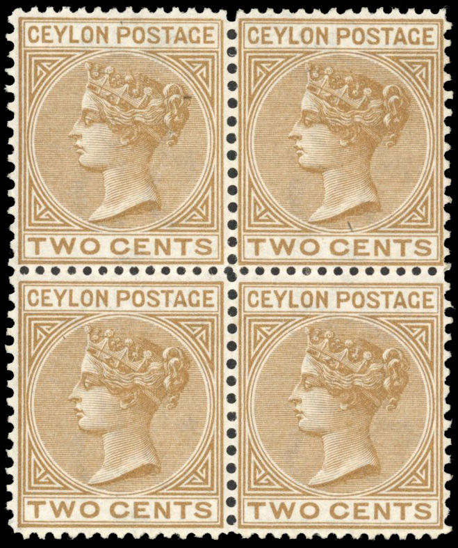 Ceylon SG 133 1872-80 2c brown perf 14 x 12½ block