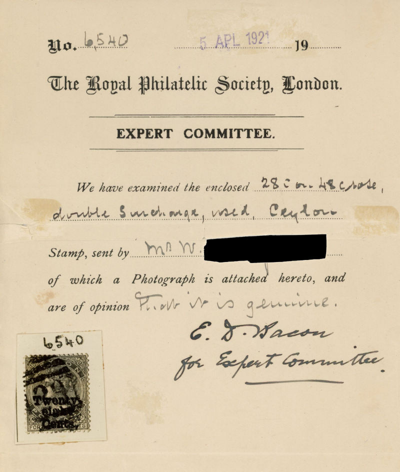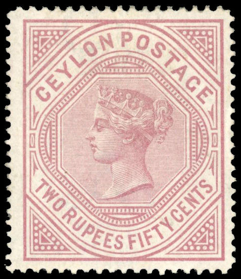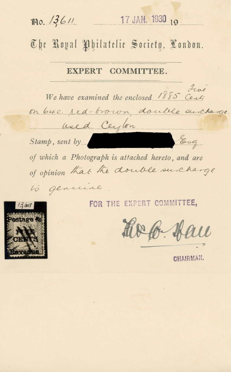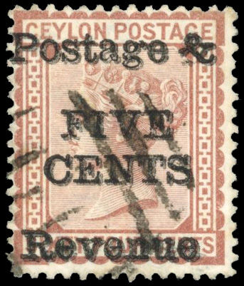 Ceylon SG 158a 1885 5c on 64c surcharge double use