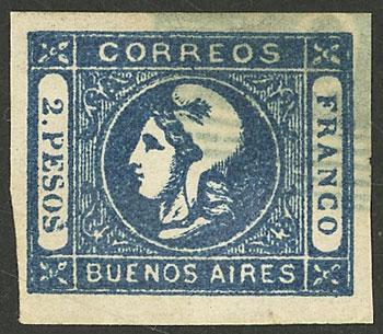 GJ.22A, 2 Pesos indigo, worn impression, used, very nice example with ample margins, tiny thin on back in one border, barely visible and insignificant, superb front, rare!....