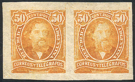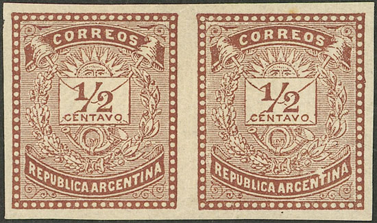 1889 ½c. Urquiza, IMPERFORATE PAIR of very fine quality! (Image)