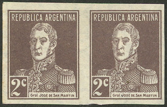 1924 2c. San Martín, handsome IMPERFORATE PAIR, VF! (Image)