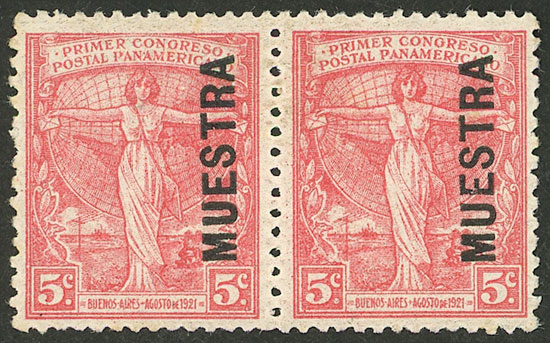 1921 5c. Postal Congress, pair with MUESTRA overprint, excellent! (Image)