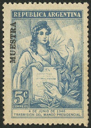 1946 Transmission of presidential power, with MUESTRA overprint, very rare! (Image)