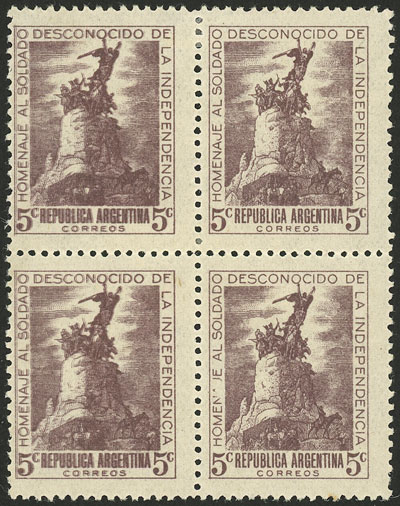1946 Unknown Soldier, block of 4, the left stamps with DOUBLE IMPRESSION variety, very fine quality! (Image)