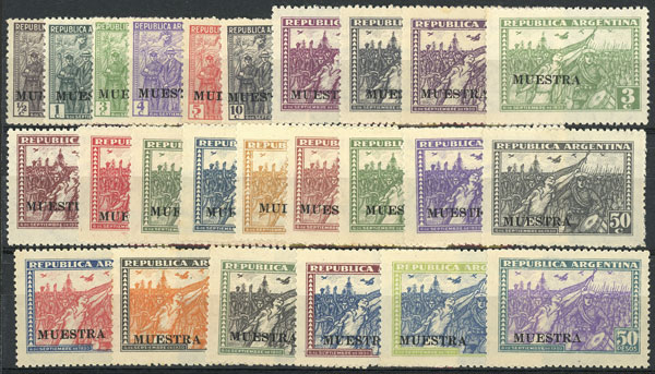 GJ.670/694, 1930 Revolution, cmpl. set of 25 values with MUESTRA ovpt., very fine quality! (Image)