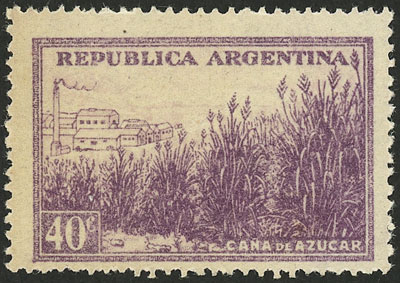 40c. Sugar cane, without watermark, PRINTED ON GUM variety, MNH (+30%), excellent and rare! (Image)