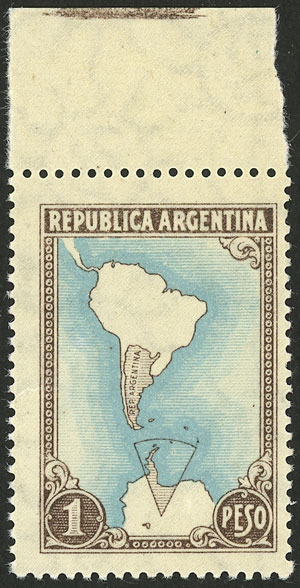 1942 1P. Map with Antarctica, PRINTED ON GUM variety, MNH, superb and very rare! (Image)