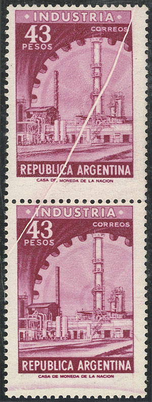 GJ.1314A, 43P. Industry on chalky paper, pair with notable PAPER FOLD, very nice! (Image)
