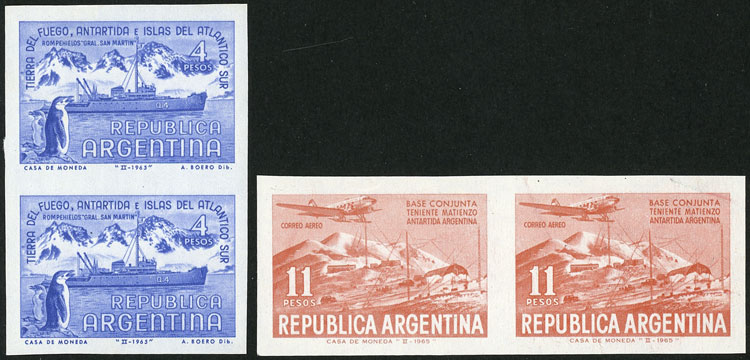 + 1294P, 1965 Tierra del Fuego & Antarctica (ship, airplane, penguin), the set of 2 in IMPERFORATE PAIRS, excellent, rare! (Image)