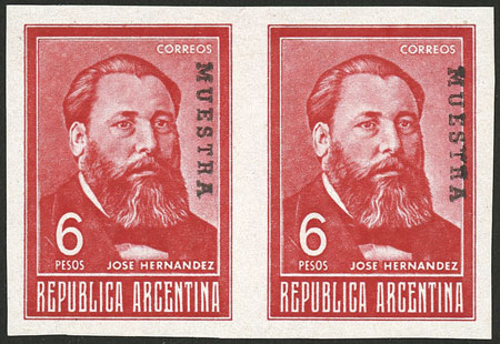 GJ.1304P, 6P. José Hernandez, imperforate pair with MUESTRA overprint, excellent quality, rare! (Image)