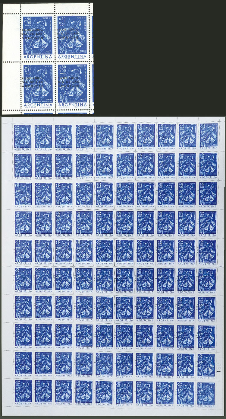 1961 Pan American day 50c. + 50c., complete sheet with variety: OVERPRINT VERY SHIFTED to the left, MNH, excellent quality. It will be included in the next edition of the GJ catalog as GJ.1211a with a value of $10 each stamp, good opportunity! (Image)