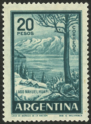 GJ.1145SG, 20P. Nahuel Huapi lake PRINTED ON GUM, VF quality, rare! (Image)