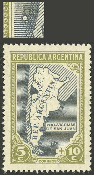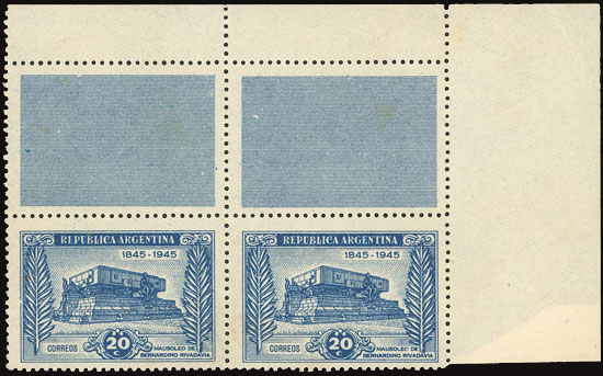with VARIETY: unprinted area (produced because it was soaked, as it was partially printed on gum) (Image)