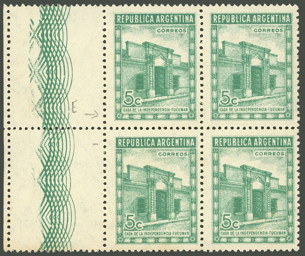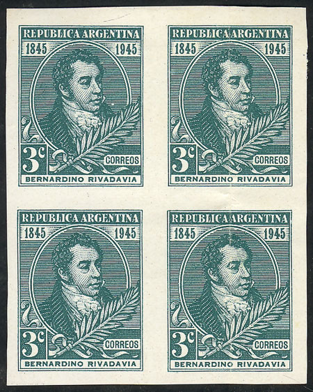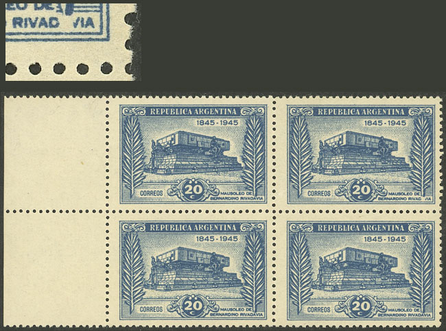 marginal block of 4, one with "RIVAD VIA" variety (pos.56) (Image)