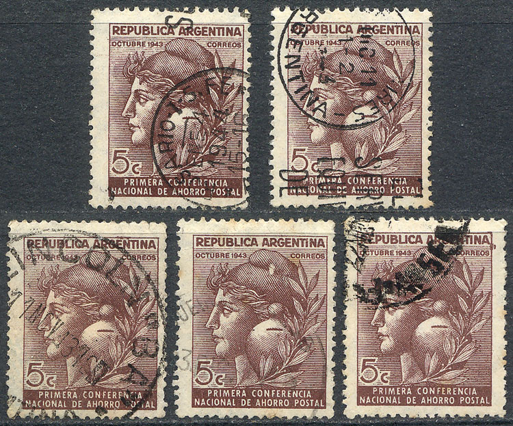 5c. Postal Savings, round sun wmk, lot of 5 different unlisted varieties (indicated on reverse), VF! (Image)