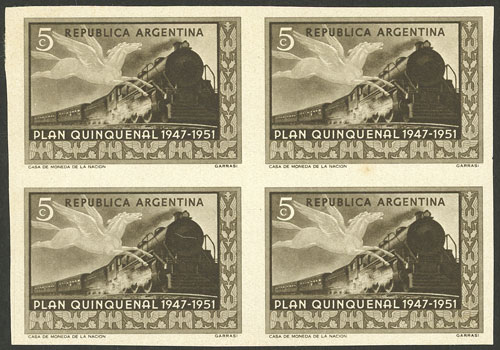 Train, block of 4, PROOF printed on lightly glossy medium paper, in dark dun, VF (Image)
