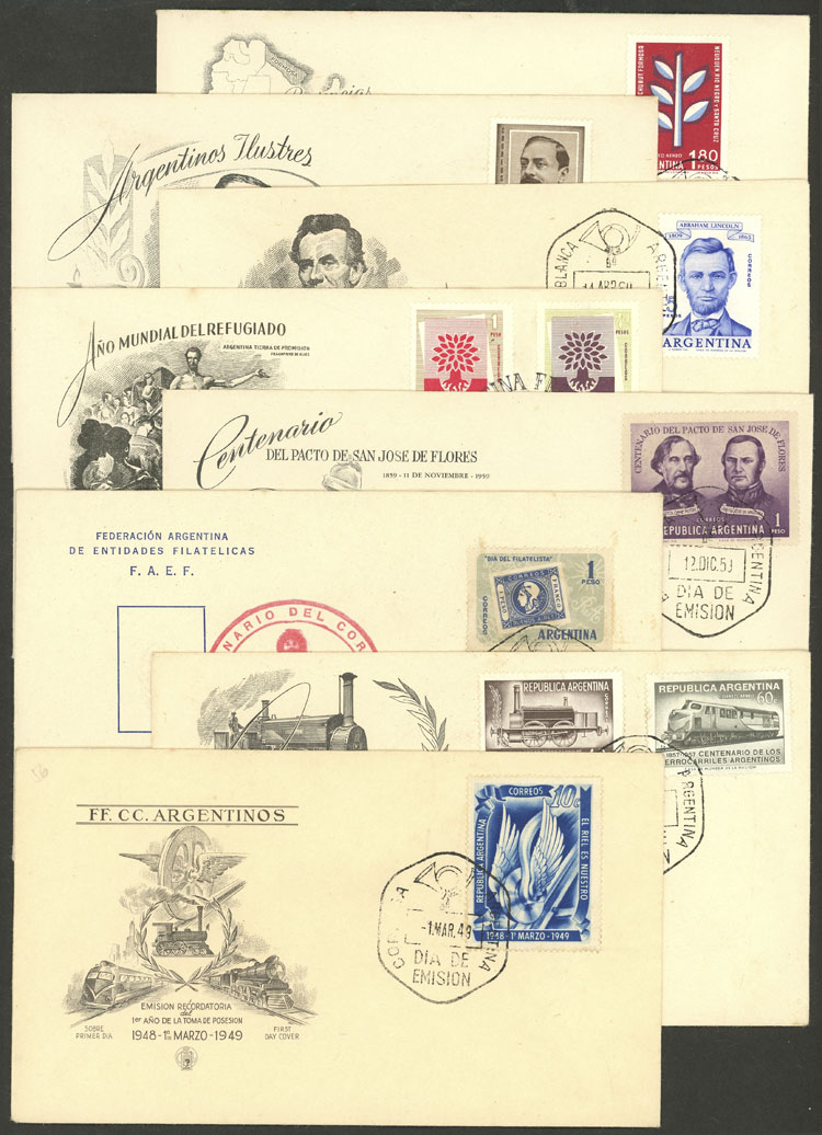 GJ.972 + other values, 8 commemorative stamps, years 1949 to 1960, on FDC covers (Image) (Image-02)