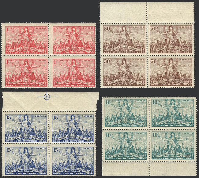 GJ.936/939, First anniverdary of the October 17 Movement, set without the low value in blocks of 4, low start! (Image)