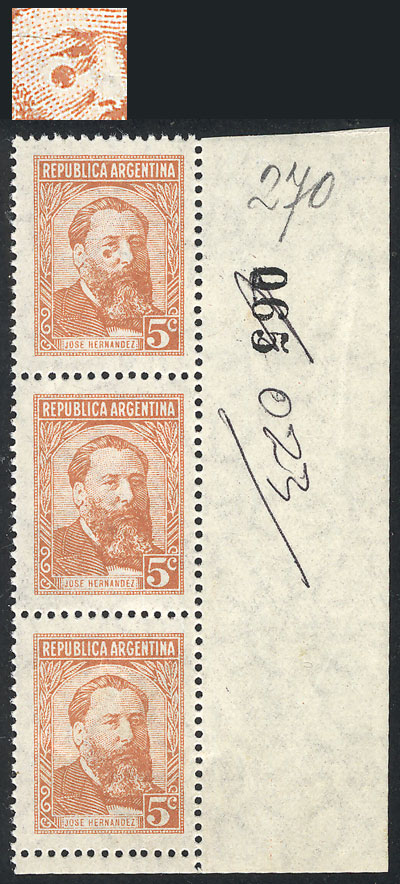 numbered corner strip of 3, one with VARIETY: Spot below the eye, VF (Image)