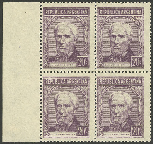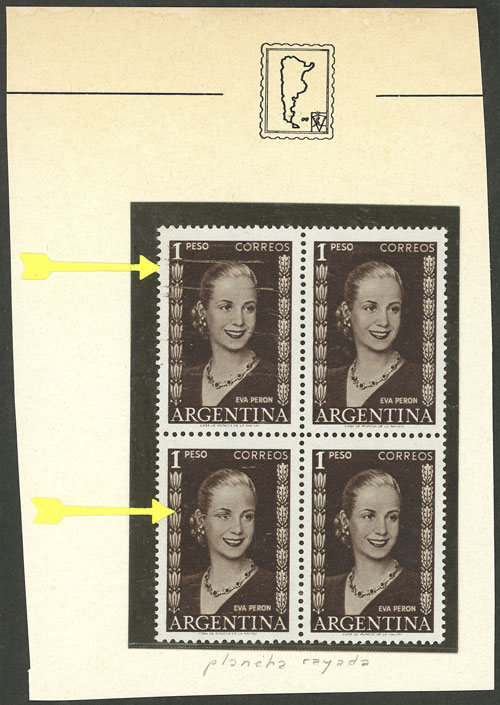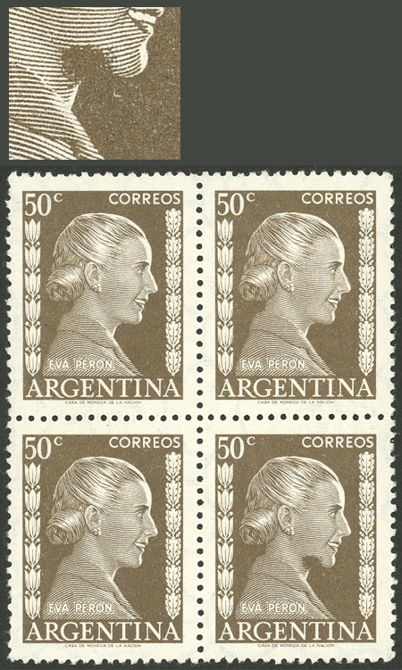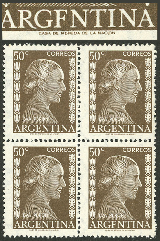 GJ.1010b, block of 4, one with "ARGFNTINA" var. (the variety is MNH) (Image)
